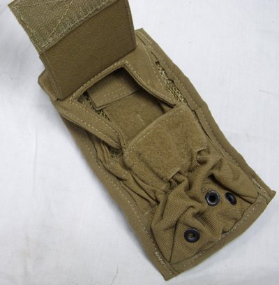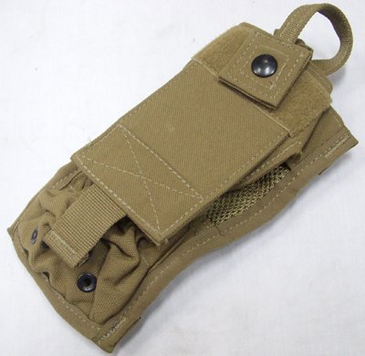 米軍放出の無線機ポーチです。程度は極上品です。色はコヨーテ?デザート?後ろはメッシュになっていて作りもいいです。おそらくDBT製です。収納部分の大きさは約18×4×7.5センチぐらいです。