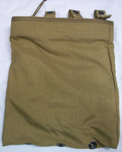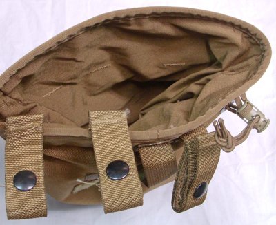 米軍放出のコヨーテ色のダンブポーチです。CSM製です。こちらはラベルのメーカー文字が大きめなタイプです。口部分にはプラ板のようなものが内蔵されていて、空マガジンを素早く収納出来ます。口部分から6〜7センチ下にはラバーコードが内蔵されていて、コードを引っ張ると巾着袋のように、素早く閉まるようになっています。程度は極上品です。もう、1点のCSM製とはラベルや細部パーツ等が異なります。外観の大きさは約30×25センチぐらいです。本来、空マガジン入れですが、ベルトに付けてサイフや携帯等の小物収納にもいいですよ!中身が空の時はクルクル巻いて付属のベロクロで固定して、コンパクトになります。(色合いは画像と若干異なる場合があります。)