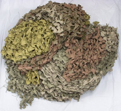 米軍の偽装網です。デザート用です。程度は中古で土汚れ等があります。中古良品です。基本的に車両や野外設備等を偽装する時に使いますが、日よけとしてつかったり、色々な装備のカモフラージュ等にも使えます。大きさは5.0×1.8メートルぐらいはあります。