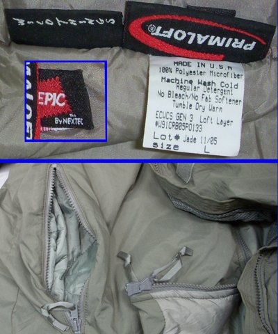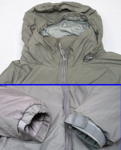 米軍放出のACUやABU用のプリマロフトジャケットです。GEN3です。こちらのタイプはサイズ表記のみで丈の表示がないタイプですので、もう1つのタイプとは分けて掲載しておきます。保温性、撥水性、透湿性もあり、MCでは、ハッピースーツとも呼ばれています。(これを着れば冬でも快適に過ごせるということかな?)軽量でダウンジャケットのような感じです。エリにはフードも収納されていて全体的に作りがいいです。ARMYのレイヤーシステムのLEVEL7になります。程度は中古ですが、割とキレイです。中古上です。
