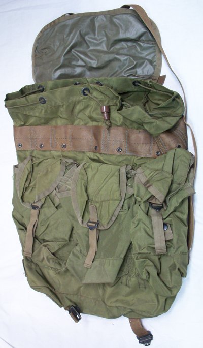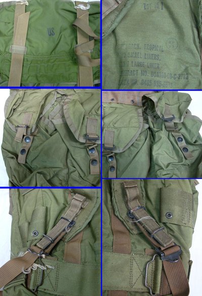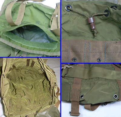 ナム戦時の60年代のトロピカルリュックサックです。本体のみです。フレームとウエストパッドは付属していません。程度は中古でそれなりに使用感がありますが、中古良品です。一通り見てみましたが、金具やストラップの破損はないみたいです。