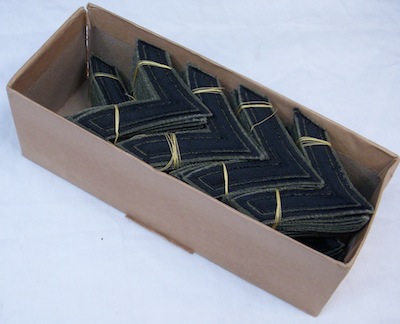 米軍放出のARMYの階級パッチです。一等兵です。画像の通り、左右セット(2枚セット)で60年代頃のものです。(画像の当時の箱入り状態から出して販売です。)もちろん、カットエッジです。サイズは7.5×8.2センチぐらいで、程度は未使用品です。探していた方どうぞ!