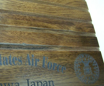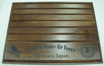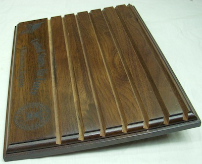 チャレンジコイン等のコインを立ててディスプレーする為の木製の台です。程度は極上品です。外観の大きさは30.5×22.5センチ程です。