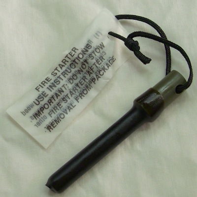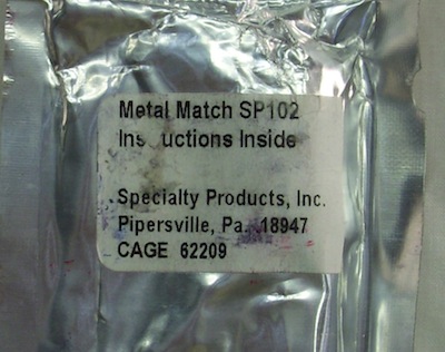 米軍放出のメタルマッチSP102です。全長8cm程で、袋入りの未使用品です。通常、サバイバルキットに含まれています。