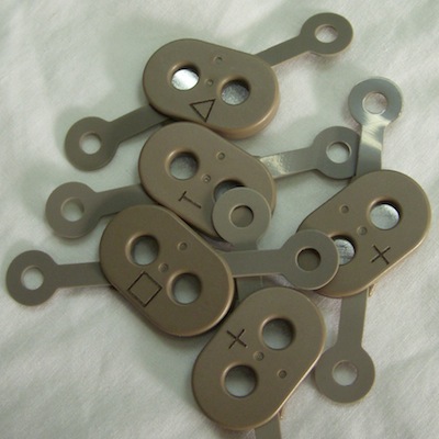 AN/PEQ-15のレーザー照射部分に取り付けるパターンジェネレータ5個になります。程度は中古良品です。画像で確認出来ますが、○のかわりに+が2つの計5個セットです。画像の1セットのみです。