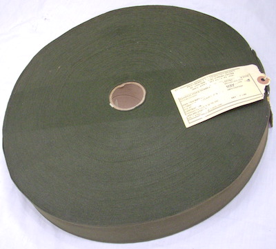 OD色のコットンテープです。90年代頃のものです。素材はコットン製で幅約50mm(2インチ)です。未使用品ですが、保存時に付いたと思われるシミやヨゴレがあります。ご了承下さい。巻きの状態で在庫あるので、メートル単位の切り売りです。基本1m¥300です。