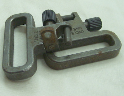 米軍放出のUNCLE MIKE'S(アンクルマイク)のスリングアダプターです。程度は中古良品です。素材はスチール製でストラップを通す部分の幅は約34mm、取り付け部の幅は約8mmです。