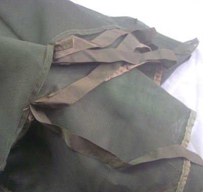 米軍のコット(簡易ベット)に使用する蚊帳です。これの他に木製のポール(別売り)と一緒に使用します。年代は60年代頃のもので、