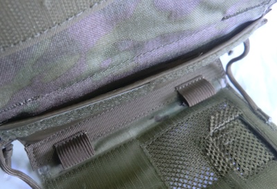 マルチカム柄の外観部分の大きさは1枚目画像の状態で約16.5×3×10.5cm程です。大きめのナイロンウォレットぐらいです。内側には薄物が収納出来るベロクロ開閉のポケットが1箇所ありますので、紙幣ぐらいでしたら、収納可能です。