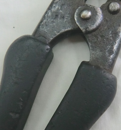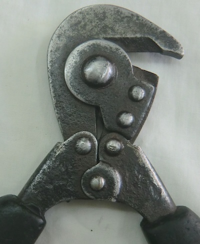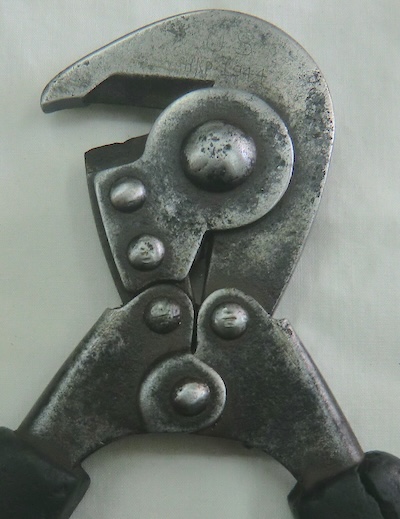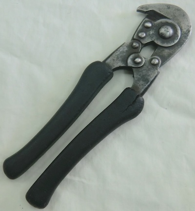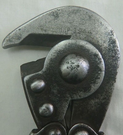 米軍のワイヤーカッターです。HKP社製の1944年です。1枚目の画像の状態で長さ約23cmぐらいで、程度は結構、中古で若干、刃がかけて握りのラバー部分にひび割れ(最後から2枚目の画像)があり、留めピンがゆるいのか、若干ぐらつきがあります。中古並です。正常に開閉可動はします。画像の1点のみです。