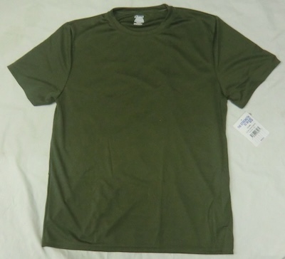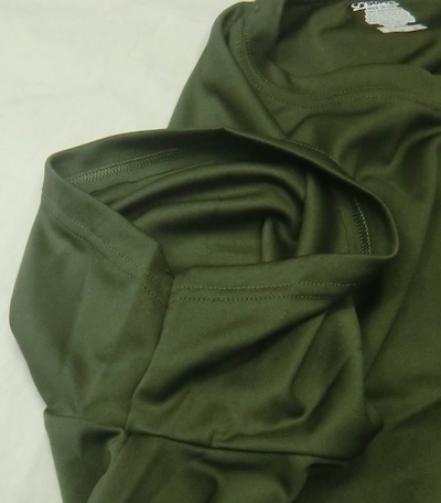 SOFFE社製のOD色の軍用Tシャツです。未使用品のアメリカ製です。素材はポリエステル100%で、若干の伸縮性のある素材ですが、参考までに各サイズの各所のサイズは 平置き状態で測って