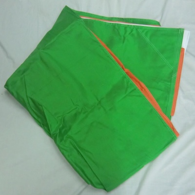 インド国旗です。詳細不明。素材はコットン製です。大き過ぎて広げられません。程度は未使用品で、サイズは180×270cmぐらいです。3枚目の画像の感じだと思います。