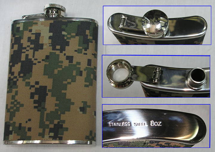 米軍放出のウィスキーボトル(スキットル)です。画像の通り、MARPAT柄が貼付けられています。全体的にキレイですが、キズ等があるので中古上〜としておきます。容量8OZですので240mlになるでしょうか?画像の1点のみです。