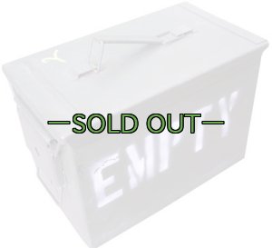 ML01型のアーモボックスです。(別タイプのML型のサイズが出て来たので、こちらをML01型、もう一方をML02型としておきます。)M型のアーモボックスをひと回り大きくした感じです。外観の大きさは約18×22×32cmぐらいです。重量は約3キロです。程度は中古でそれなりの使用感、ヘコミ、キズ等がありますが、中古良品です。マーキングは消されていたり、EMPTYの文字が入っていたりします。
