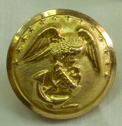 MC用(海兵)のブルードレスジャケット(制服)に使用されている金色のボタンです。5個セットでの販売です。素材はブラスだと思われます。直径約26ミリで男性用のブルードレスのフロント部分に使用されています。メーカーや年度により、多少細部が異なる場合があります。程度は中古ですが割とキレイです。中古上です。リペア用に使ってもいいですし、パーツとして使ってもいいですよ。