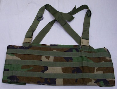 ウッドランド柄のRACKベスト(ハーネス)です。こちらはファステックスがデザート色になっています。程度は保管時の軽いヨゴレ等がある場合がありますが、未使用品です。胸のパネル部分は収納することも出来ます。