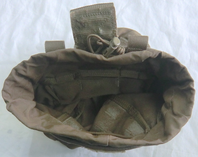 米軍放出のコヨーテ色のダンブポーチです。、空マガジンを素早く収納出来ます。内側には、ゴムヒモが内蔵されていて、コードを引っ張ると巾着袋のように、素早く閉まるようになっています。(5枚目画像)程度は中古でゴム伸びや結構使用感がありますが、使用に差し支える不具合はないので、中古良品としておきます。1枚目の画像の状態で外観の大きさは約27×33cmぐらいです。本来、空マガジン入れですが、ベルトに付けてサイフや携帯等の小物収納にもいいですよ!中身が空の時はクルクル巻いて付属のベロクロで固定して、コンパクトになります。(最後の2枚の画像)