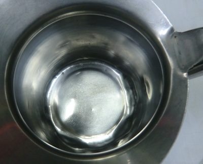 軍用のステンレス製の大型ピッチャーです。60年代頃のものです。程度は中古でそれなりに使用感、ヘコミ等がありますが、中古良品です。高さ約24cm、底面の直径15cm程です。