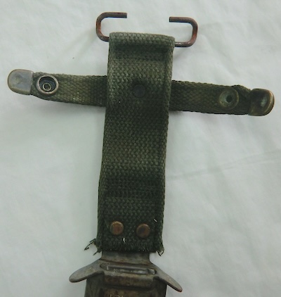 M8A1スキャバードです。バヨネット用の鞘です。程度は中古で金属部分のサビ等がありますが、金具不良やヒビ割れ等もなく、中古良品です、
