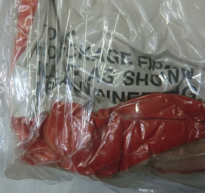 米軍放出の航空機用サバイバルスリーピングバッグです。1枚目画像の真空パック状態で大きさは約34×5×34cmで、重量2.3kgです。90年代頃のもので、色はレスキューオレンジ、コールドウェザーの表示があるので、冬季用寝袋という感じでしょうか。真空パック状態ですので、開封していませんが、特に不具合はなさそうです。形状はマミースタイルの1人用だと思われます。