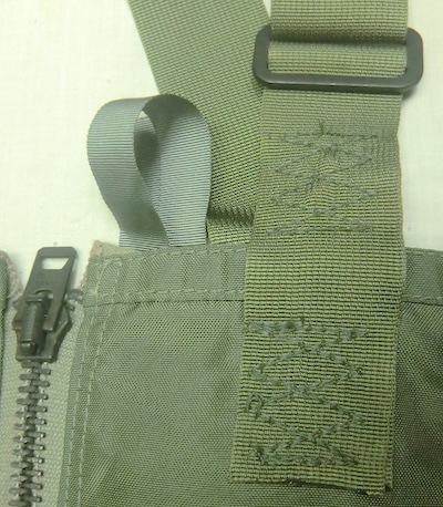 米軍放出のSV-1サバイバルベストです。通常のものとは細部が異なっていて、メーカー名のみのスタンプです。おそらく、60年代頃のものです。通常のSV-1との違いはハーネスが背中でクロスしていて、フロントジップはMA-1等に使用されているような、SCOVILLジップです。あと左右のサバイバルポケット内部は小ポケット等の仕切りなしです。海軍、海兵航空隊で使用されていた、SV-2Bサバイバルベストの元となるタイプです。。作り的にはシンプルな感じで、サイズはフリーサイズでショルダーストラップと腰部分の数本のストラップでサイズ調整します。程度は未使用品みたいですが、保管時の若干のシミやヨゴレがありますので、極上品としておきます。