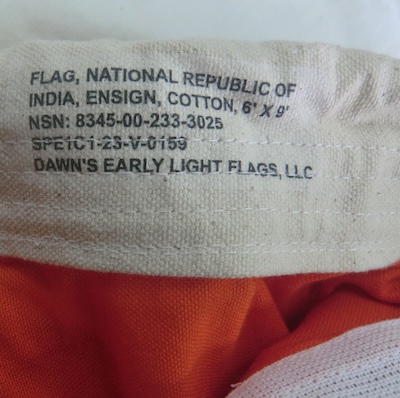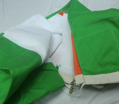 インド国旗です。詳細不明。素材はコットン製です。大き過ぎて広げられません。程度は未使用品で、サイズは180×270cmぐらいです。3枚目の画像の感じだと思います。